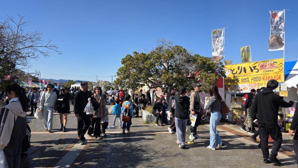 今回は晴天にも恵まれ、土曜日に3万人、日曜日に4.5万人、2日間で計7.5万人のみなさまにご来場いただきました。自衛隊の艦船見学を実施した波止場公園や似島会場にも、シャトルバスやチャーターフェリーなどを利用して多くの方にお越しいただきました。なお、似島会場への来場者数は過去最多となりました。